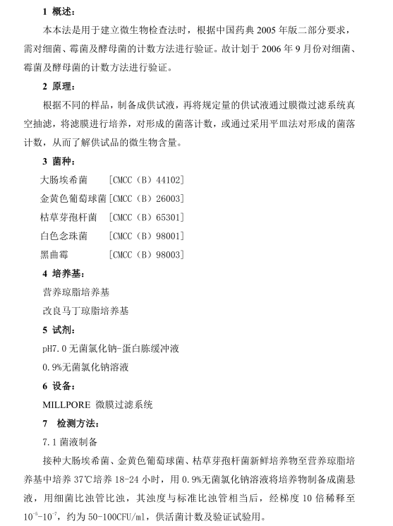 纯化水细菌、霉菌及酵母菌计数验证方案(交)