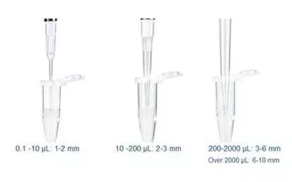 操作之前请先选择正确的移液器,移液器可在10-100%量程范围内操作,但在10%量程处操作对于移液技巧要求高,故推荐在35-100%量程范围内操作。