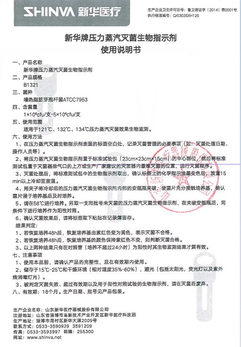 - 5. C0162 - 新华 环氧乙烷灭菌生物指示剂