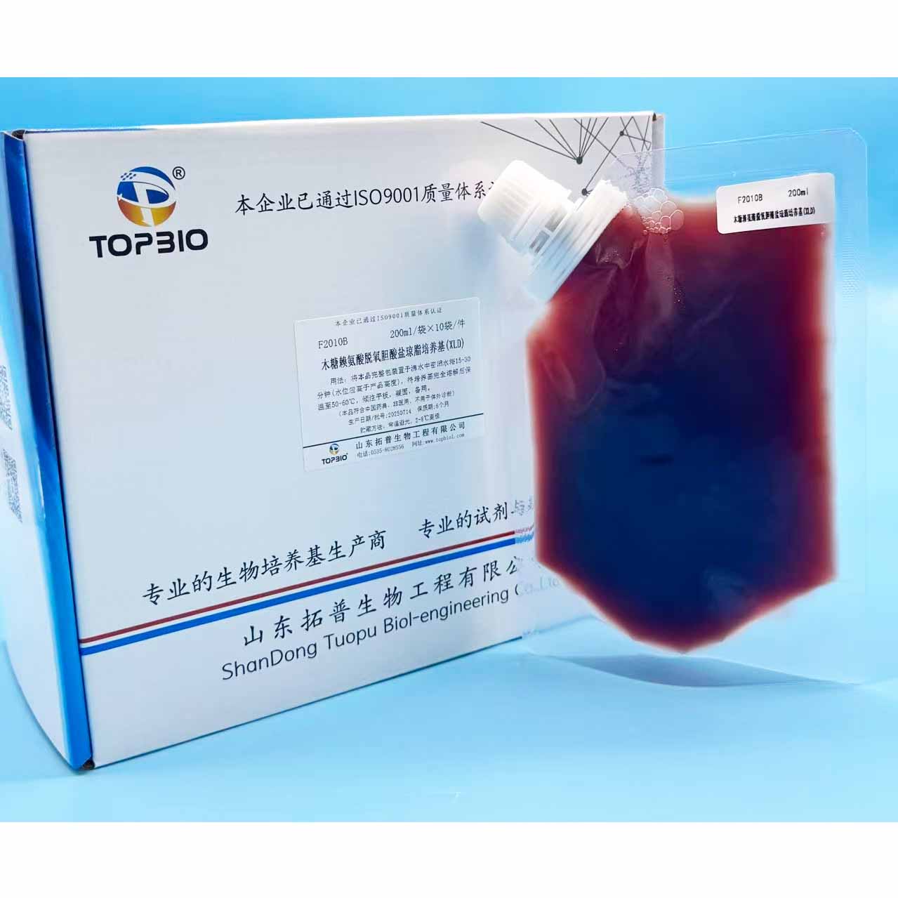 用法:将本品完整包装置于沸水中密闭水浴15-30分钟(水位应高于产品高度),待培养基完全溶解后保温至50-60℃,加入一支F2010B添加剂,轻轻摇匀,倾注平板,凝固,备用。